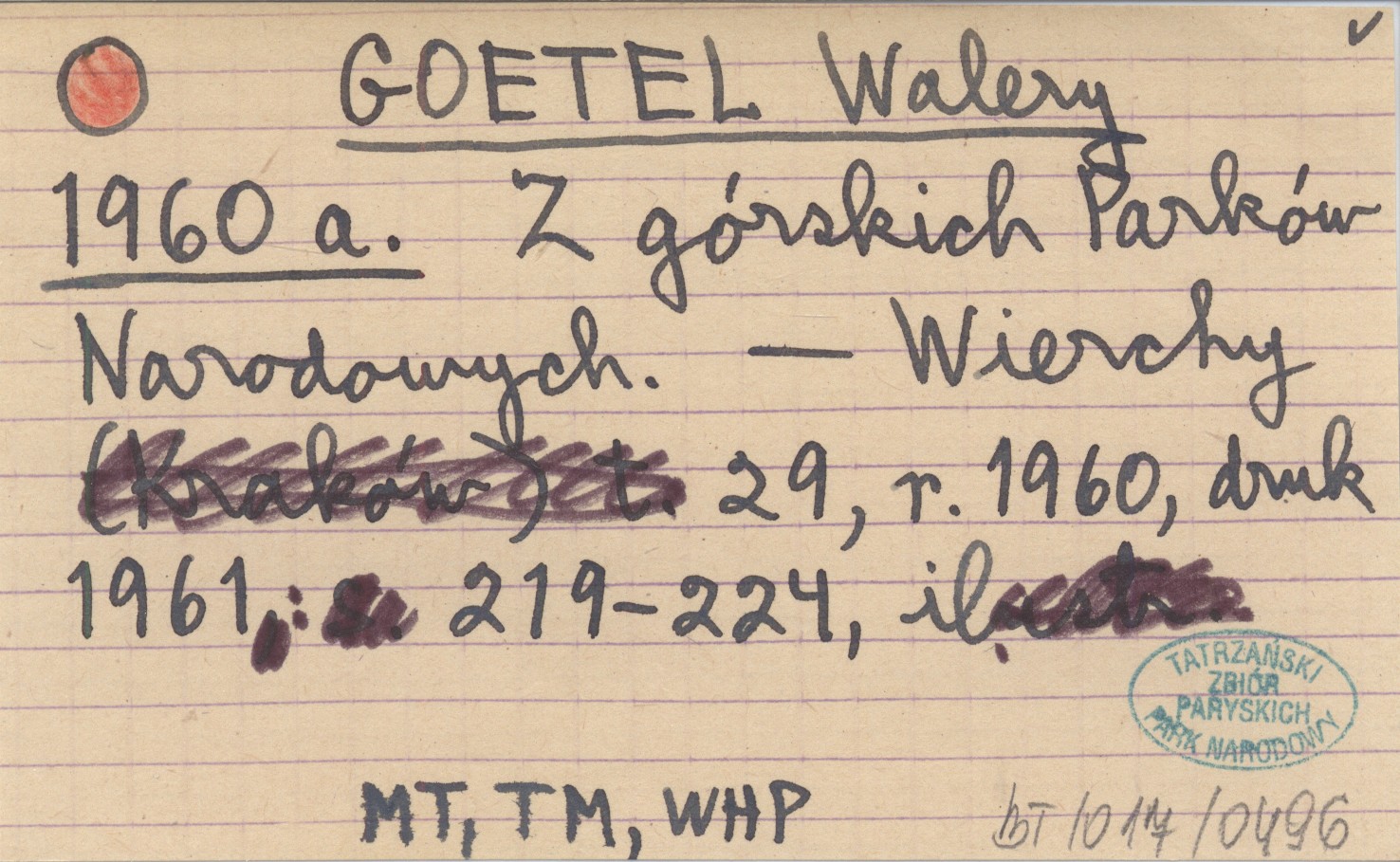 GOETEL Walery 1960 a Z górskich Parków Narodowych.