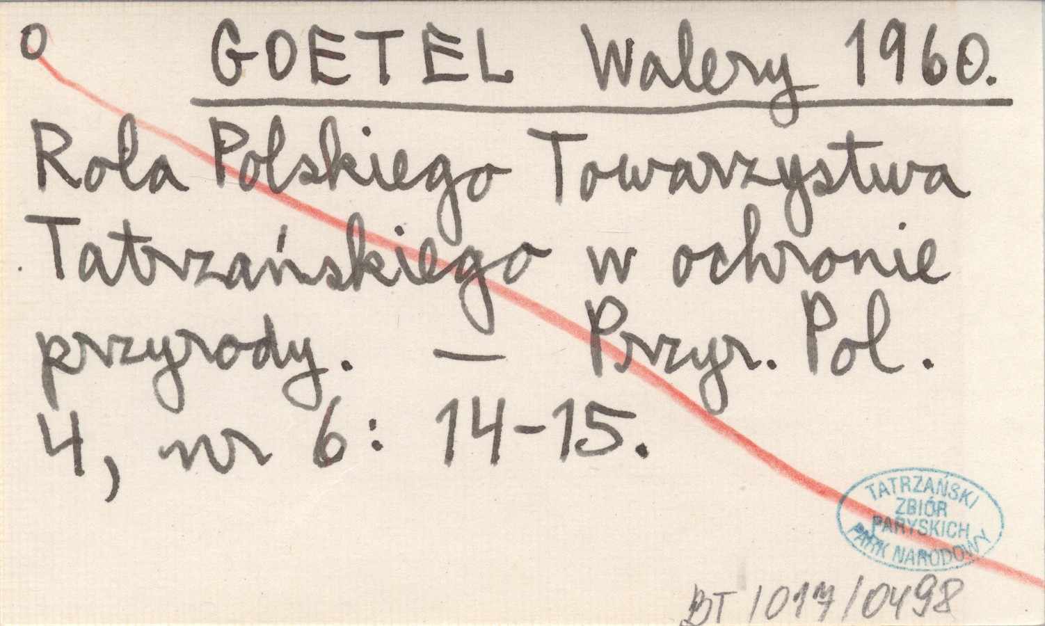 GOETEL Walery 1960 Rola Polskiego Towarzystwa Tatrzańskiego w ochronie przyrody.