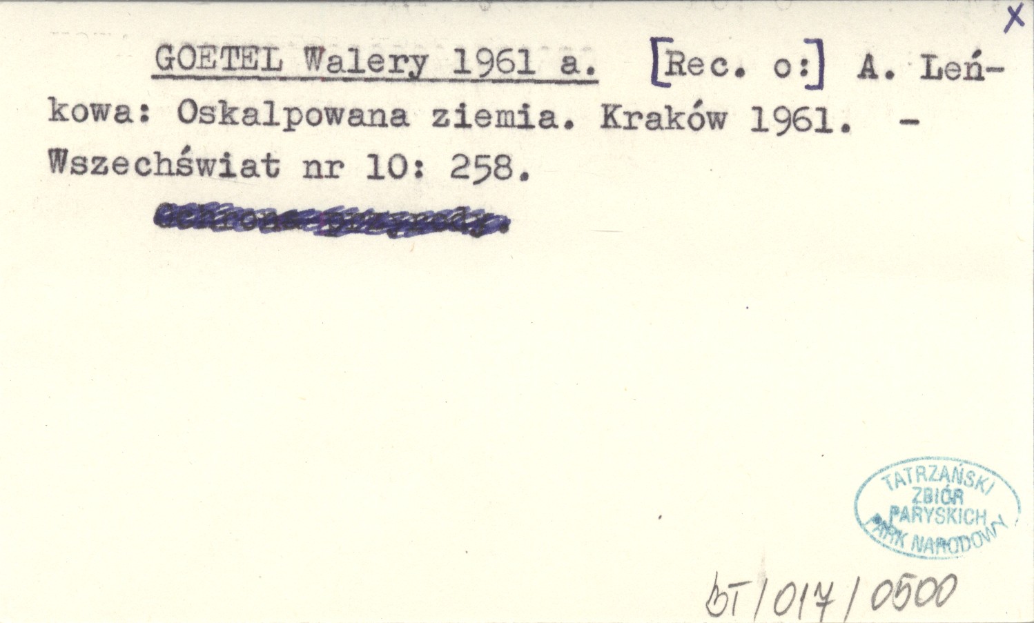 GOETEL Walery 1961 a A. Leńkowa: Oskalpowana ziemia. Kraków 1961.