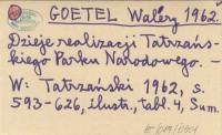 GOETEL Walery 1962 Dzieje realizacji Tatrzańskiego Parku Narodowego.