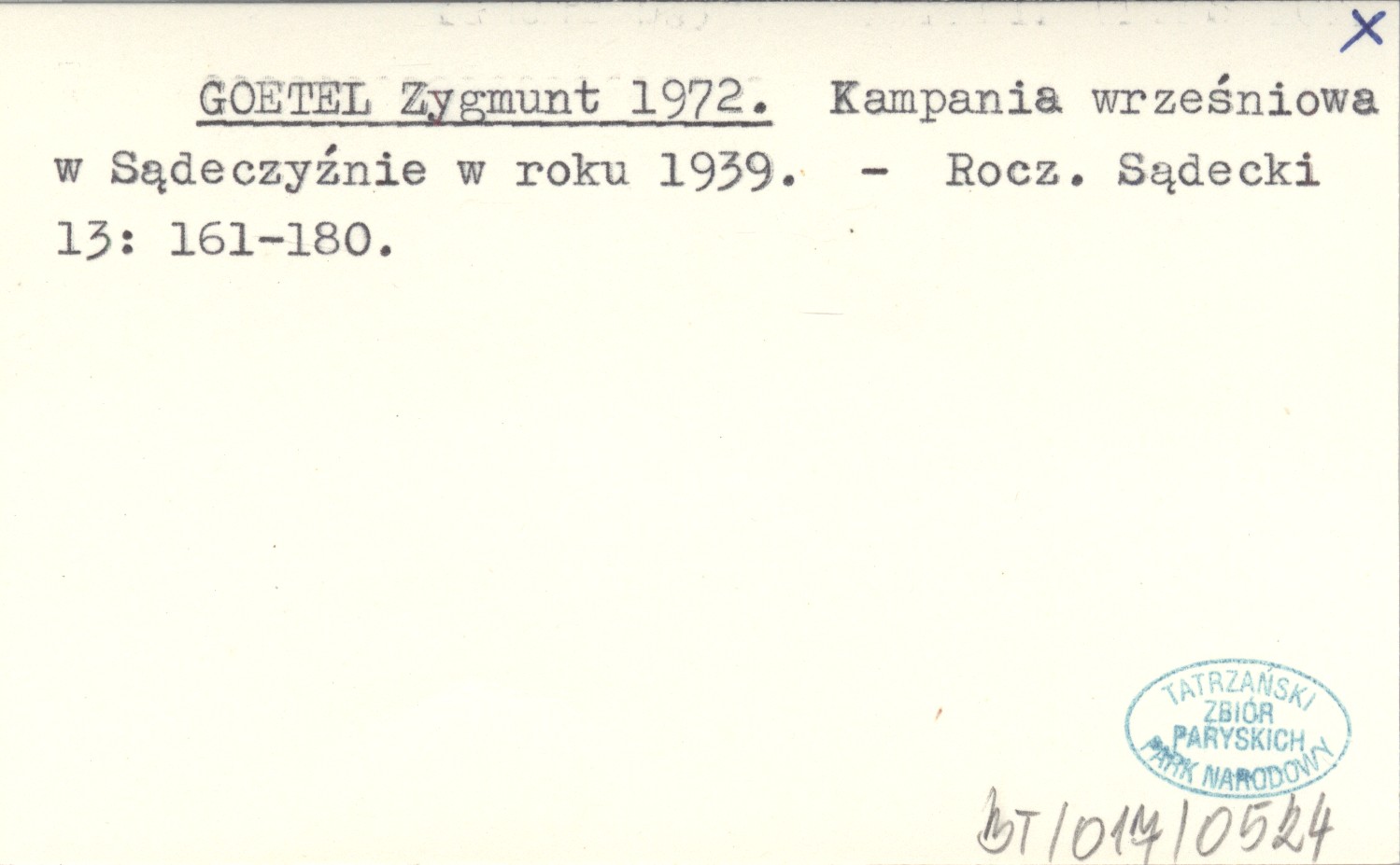 GOETEL Zygmunt 1972 Kampania wrześniowa w Sądeczyźnie w roku 1939.