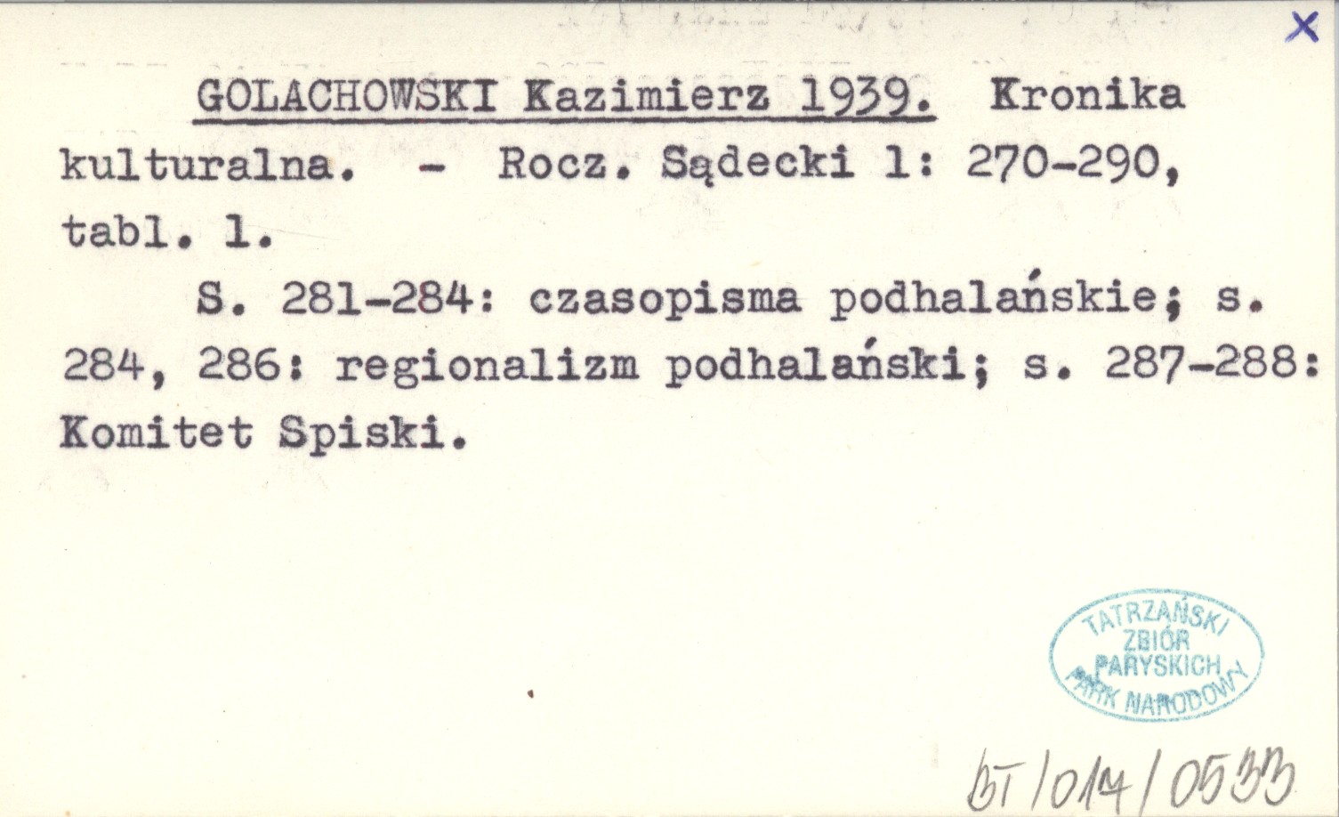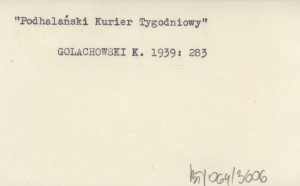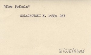 Rocznik Sądecki, 1: 270-290, 1 k. tabl. S. 281-284: czasopisma podhalańskie; s. 284, 286: regionalizm podhalański; s. 287-288: Komitet Spiski.