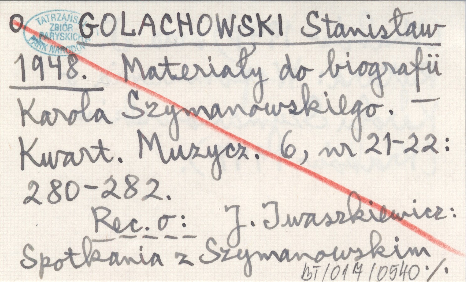 GOLACHOWSKI Stanisław 1948 Materiały do biografii Karola Szymanowskiego.