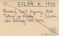 GOLÁŇ K. 1933 Pôrodný text hymny "Nad Tatrou sa blýska".