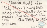 -lá- [GOLÁŃ Karol] 1947 Andrej Bielovodský [= Alojz Miškovič]: Severné hranice Slovenska. Bratislava 1946.