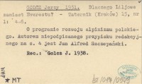 GOLCZ Jerzy 1931 Dlaczego Liljowe zamiast Everestu?
