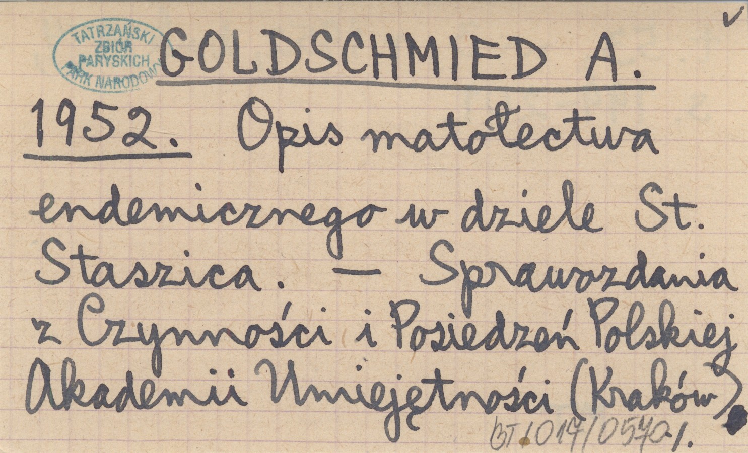 GOLDSCHMIED A. 1952 Opis matołectwa endemicznego w dziale St. Staszica.