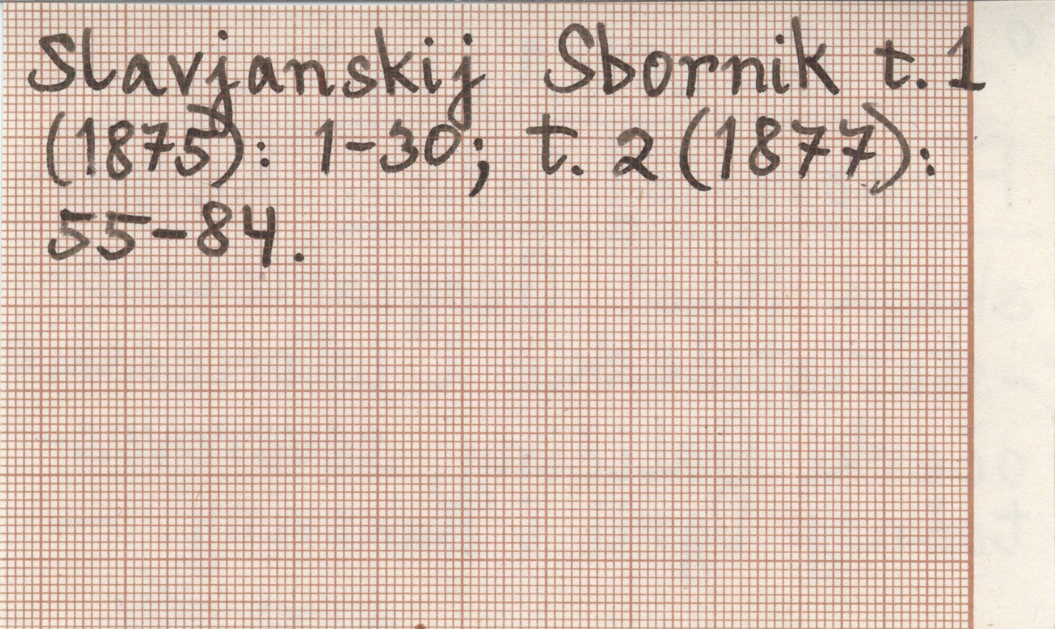Slavjanskij Sbornik, T. 1 (1875): 1-30; t. 2 (1877): 55-84.