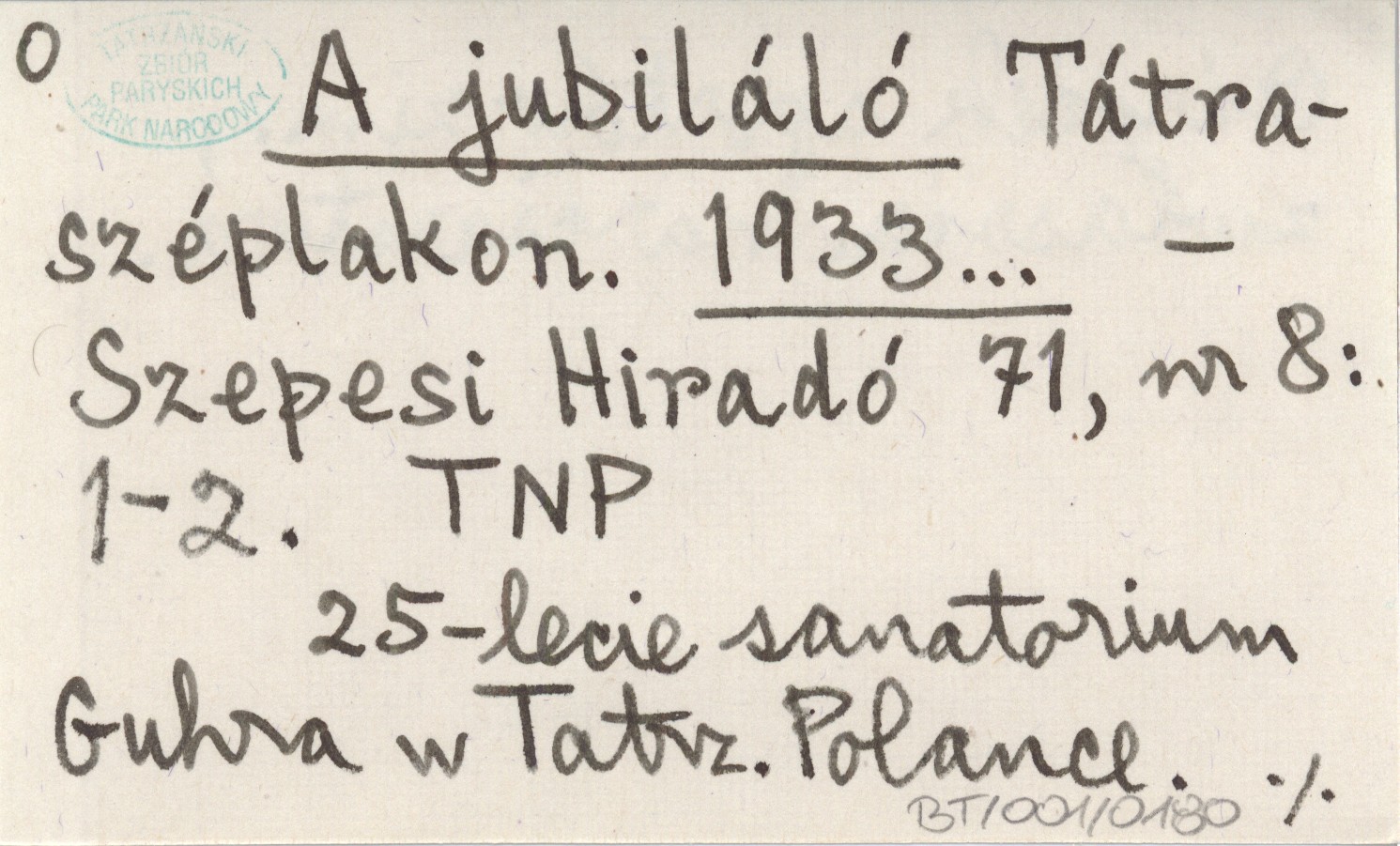 Projekt Digitalizacja fiszek z Bibliografią Tatr i Podtatrza Witolda Henryka Paryskiego jest finansowany ze środków Ministra Kultury i Dziedzictwa Narodowego oraz Tatrzańskiego Parku Narodowego.