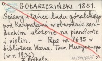 GOŁASZCZIŃSKI 1851 ¦piewy i tańce ludu góralskiego pod Karpatami w obwodzie sandeckim ułożone na pianoforte i violin.