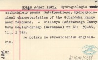 GOَB Józef 1947 Hydrogeologia zachodniego pasma Gubałowskiego. Hydrogeological characteristics of the Gubałówka Range near Zakopane.