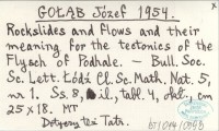GOَB Józef 1954 Rockslides and flows and their meaning for the tectonics of the Flysch of Podhale.