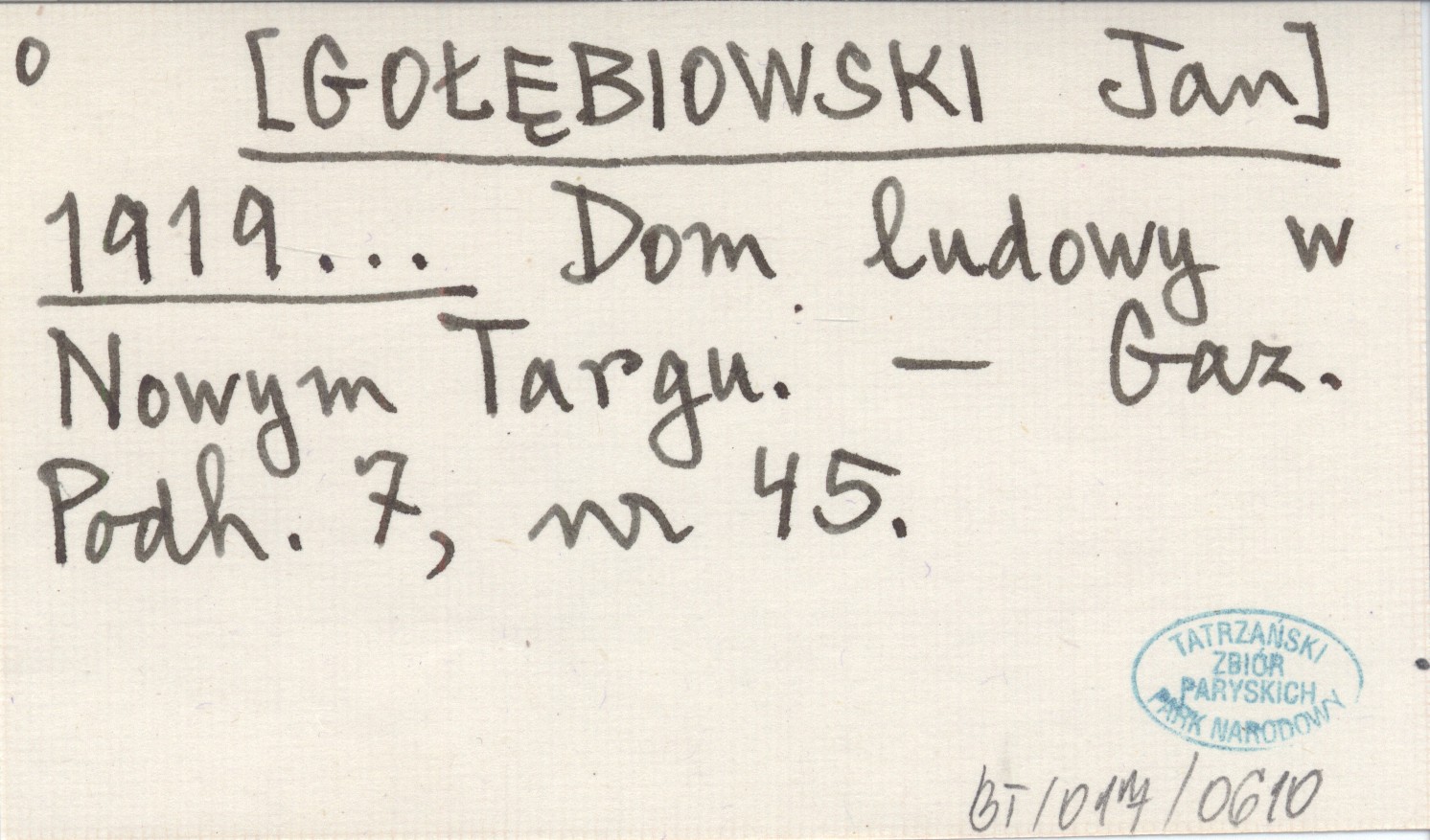 [GOŁĘBIOWSKI Jan] 1919... Dom ludowy w Nowym Targu.