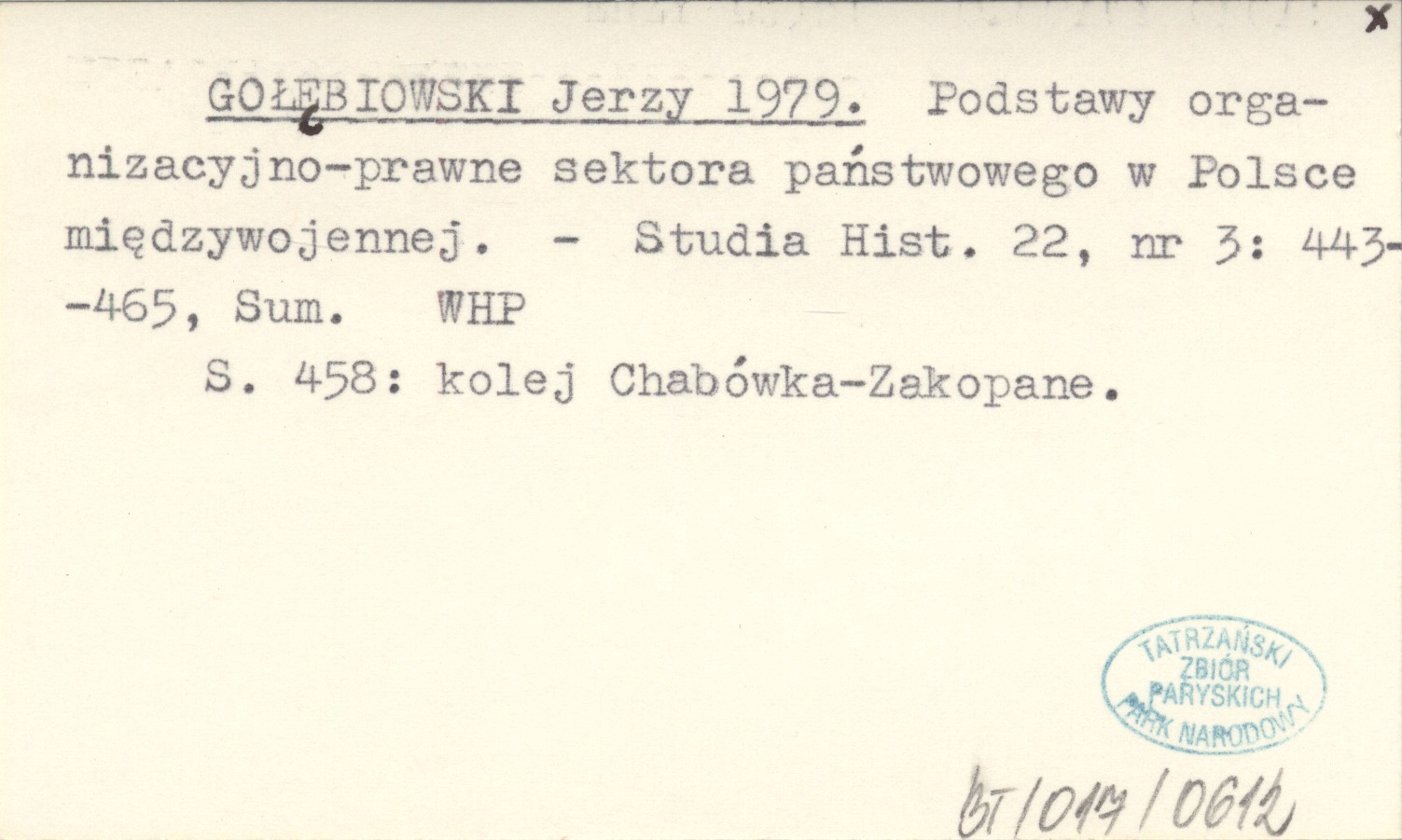 GOŁĘBIOWSKI Jerzy 1979 Podstawy organizacyjno-prawne sektora państwowego w Polsce międzywojennej.