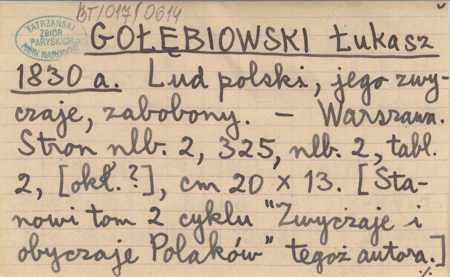 GOŁĘBIOWSKI Łukasz 1830 a Lud polski, jego zwyczaje, zabobony.
