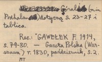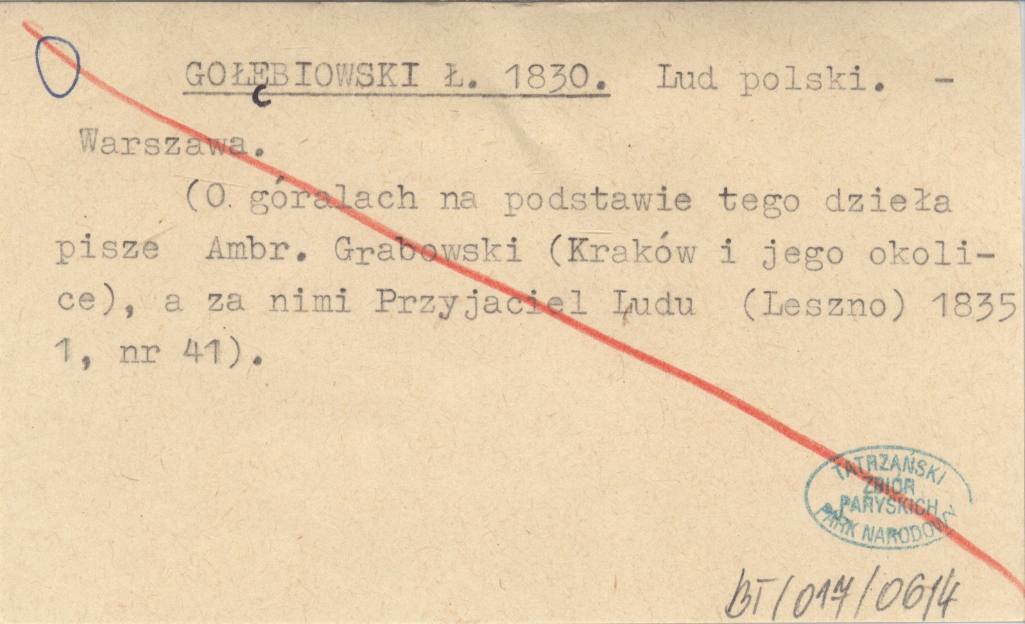 Warszawa , [2], 325 s., [2], 2 k. tab., [okł.?], 20x13 cm. Górali (m.in. Podhalan) dotyczą s. 23-27 i tablica. [Stanowi tom 2 cyklu "Zwyczaje i obyczaje Polaków" tegoż autora.] (O góralach na podstawie tego dzieła pisze Ambr. Grabowski (Kraków i jego okolice), a za nimi Przyjaciel Ludu (Leszno) 1835 1, nr 41). REC: GAWEŁEK F. 1914, s. 79-80 - Gazeta Polska (Warszawa) r. 1830, październik, s. 2.