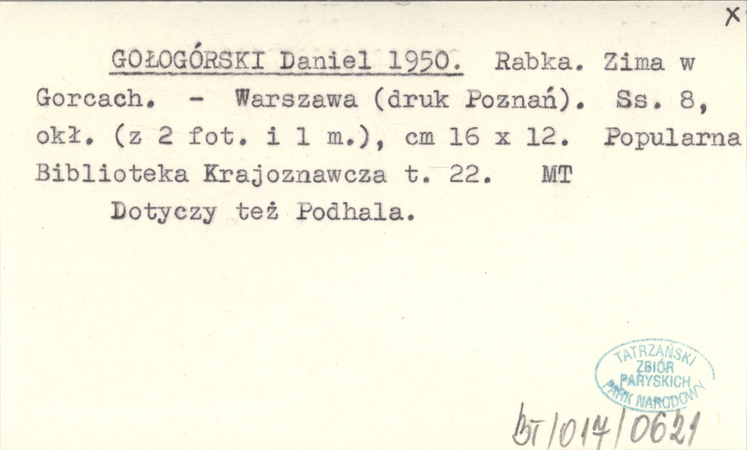 Warszawa (druk Poznań) (Popularna Biblioteka Krajoznawcza, t. 22) , 8 s., okł. (2 fot., 1 mapa), 16x12 cm. Dotyczy też Podhala.
