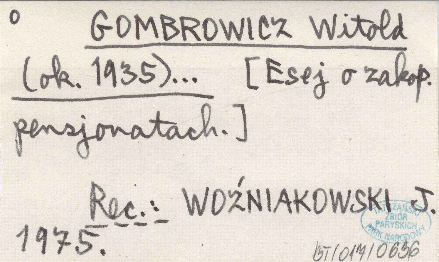 GOMBROWICZ Witold (ok. 1935).. [Esej o zakop. pensjonatach.].