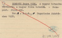 GOMBOCZ Endre 1936 A magyar botanika története. A magyar flóra kutatói.