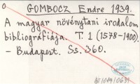 GOMBOCZ Endre 1939 A magyar növénytani irodalom bibliográfiája. T. 1 (1578-1900).