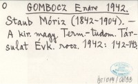 GOMBOCZ Endre 1942 Staub Móriz (1842-1904).