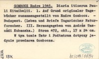 GOMBOCZ Endre 1945 Diaria itinerum Pauli Kitaibelii. 1. Auf Grund originaler Tagebücher zusammengestellt von Endre Gombocz.