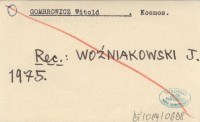 GOMBROWICZ Witold Kosmos.