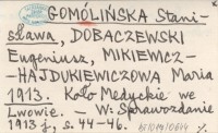 GOMÓLIŃSKA Stanisława DOBACZEWSKI, Eugeniusz. ; MIKIEWICZ-HAJDUKIEWICZOWA, Maria. ; 1913 Koło Medyckie we Lwowie.