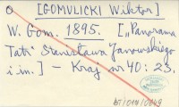 W. Gom. [GOMULICKI Wiktor] 1895 ["Panorama Tatr" Stanisława Janowskiego i in.].