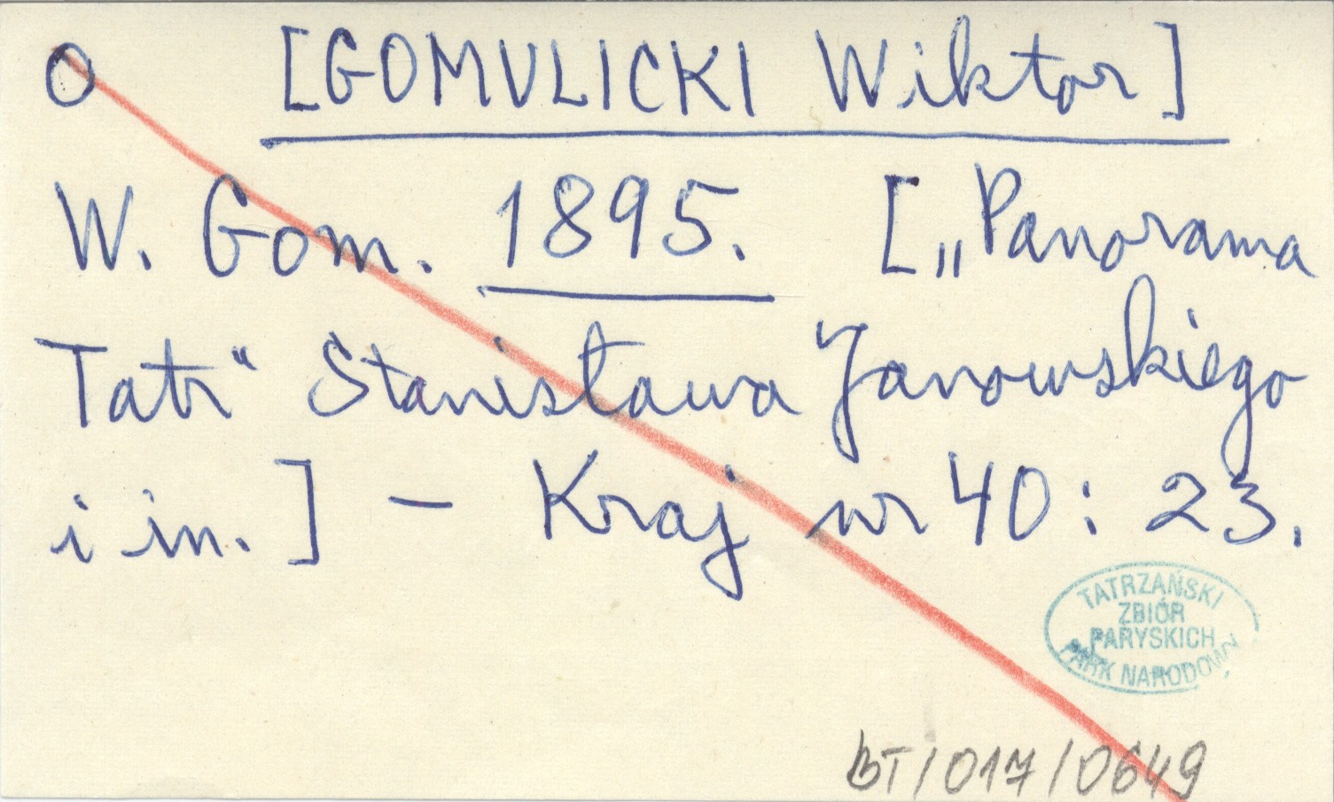 W. Gom. [GOMULICKI Wiktor] 1895 ["Panorama Tatr" Stanisława Janowskiego i in.].