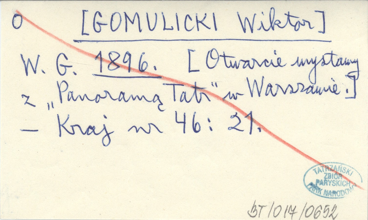 W. G. [GOMULICKI Wiktor] 1896 [Otwarcie wystawy z "Panoramą Tatr" w Warszawie.].