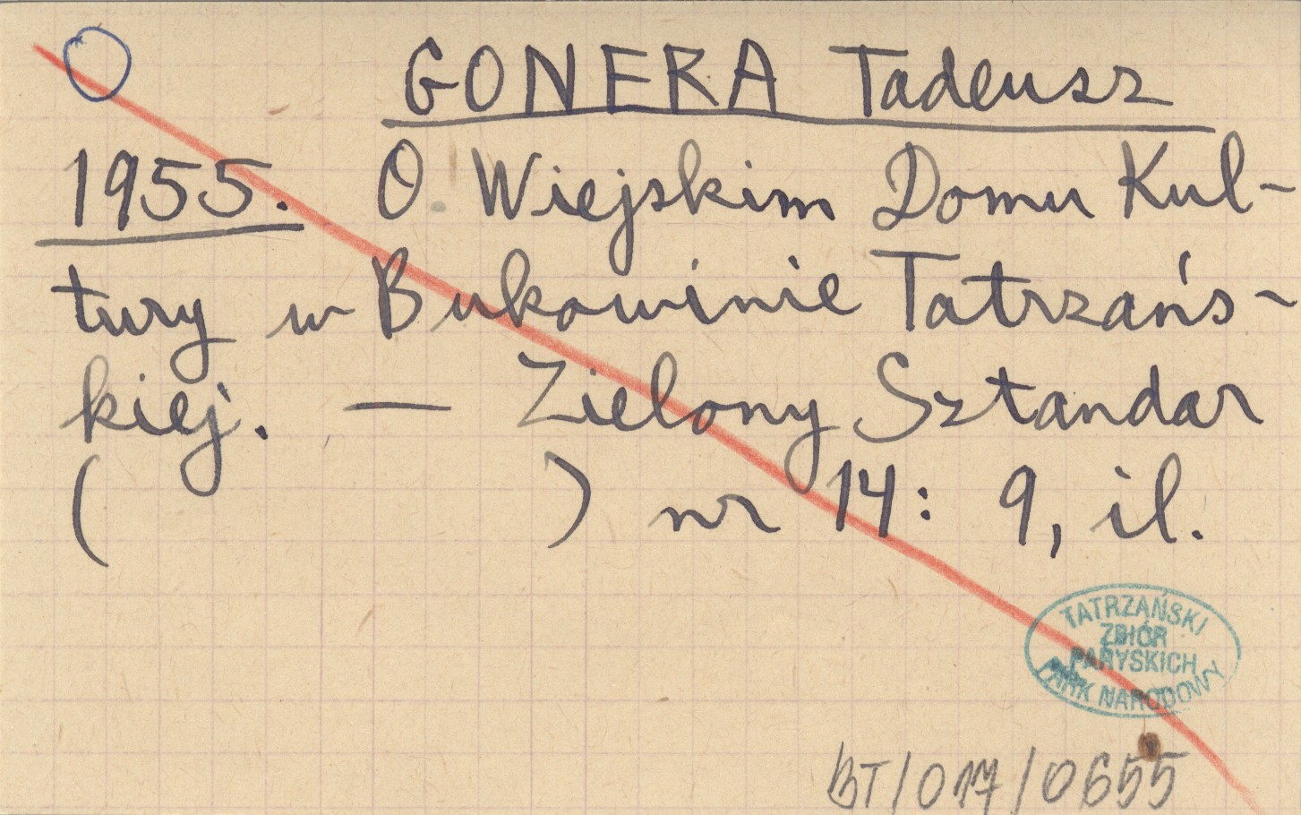 GONERA Tadeusz 1955 O Wiejskim Domu Kultury w Bukowinie Tatrzańskiej.