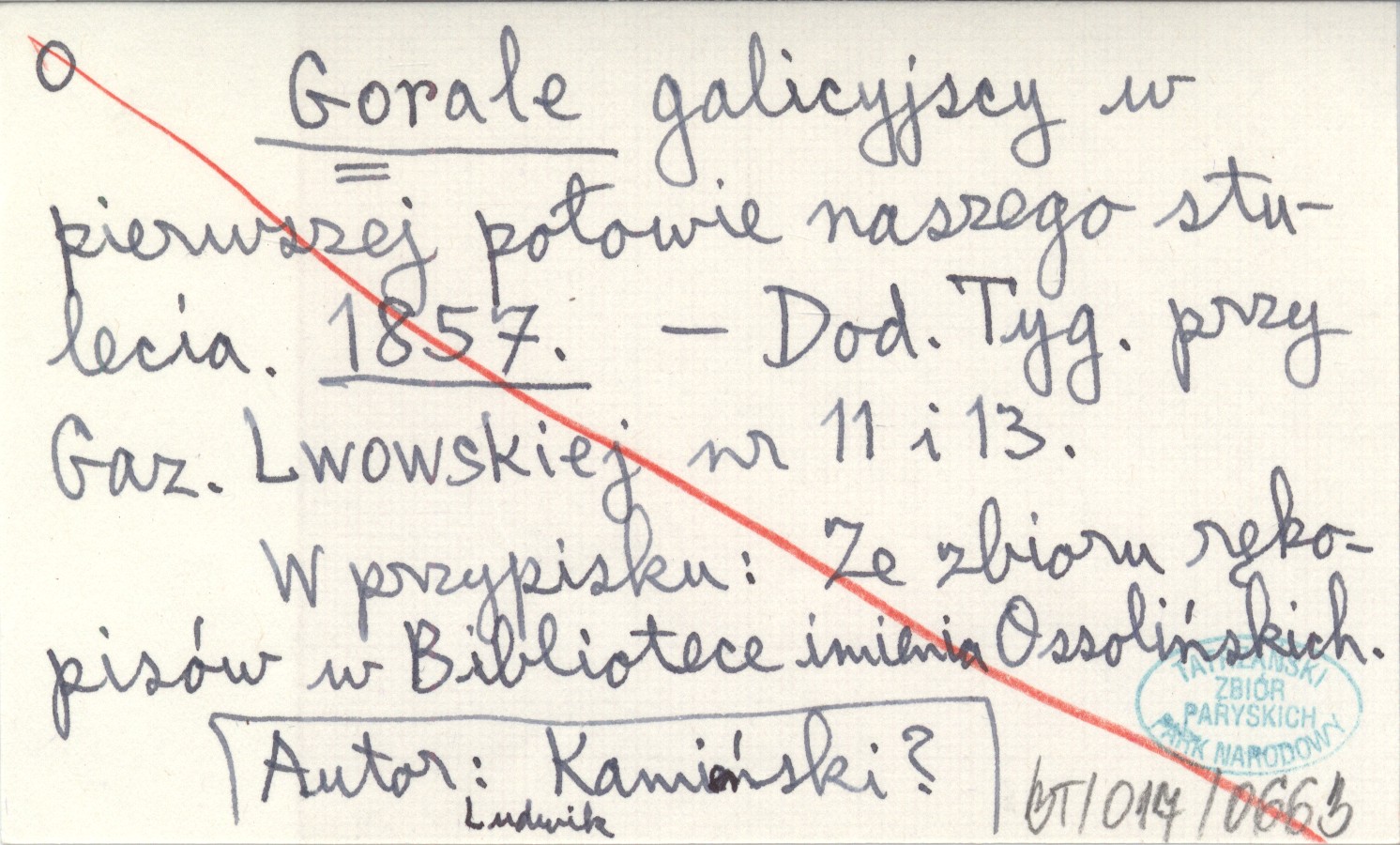 Dod. Tyg. przy Gazecie Lwowskiej, Nr 11, 13. W przypisku: Ze zbioru rękopisów w Bibliotece imienia Ossolińskich. Autor: Ludwik Kamiński ?