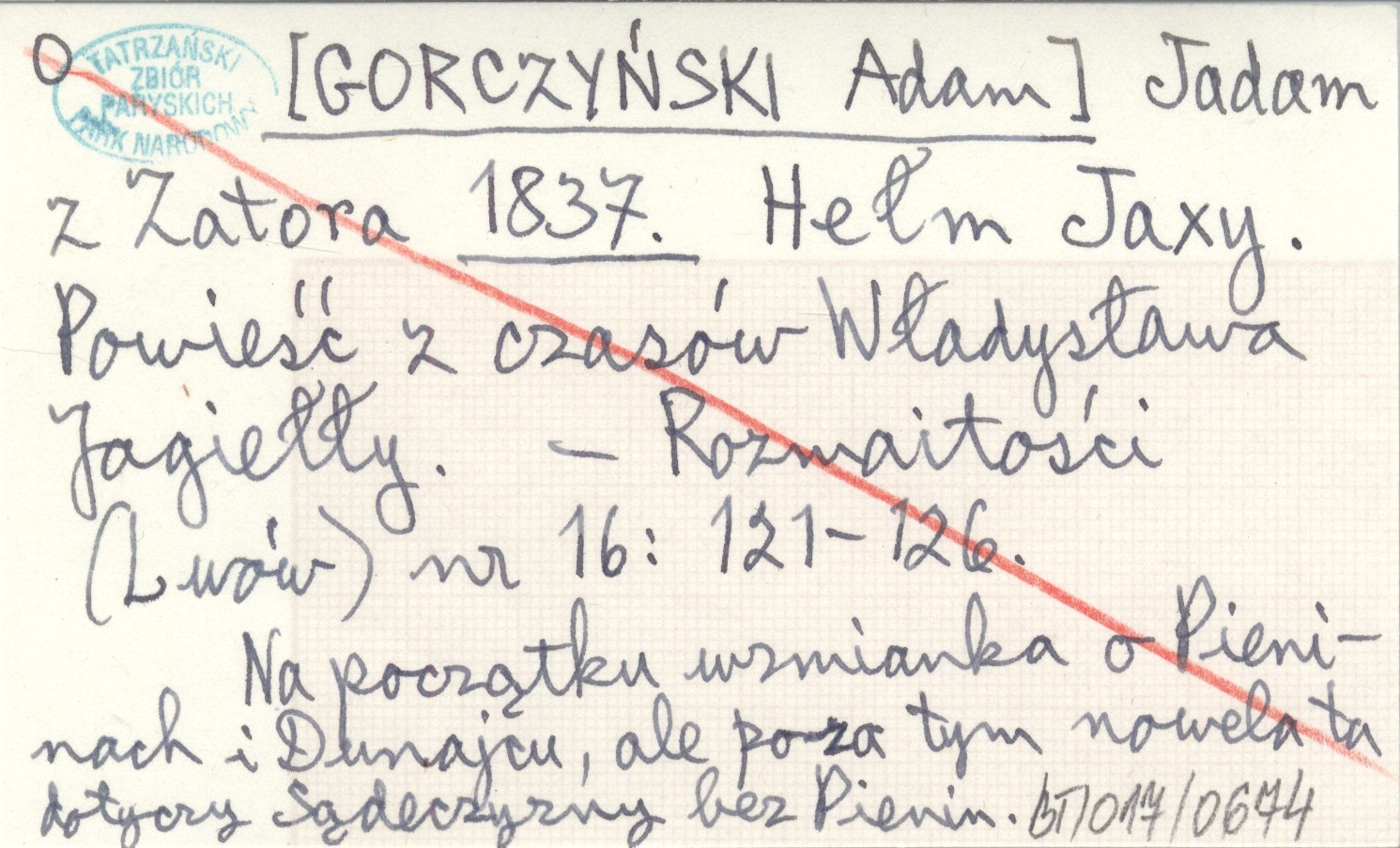 Jadam z Zatora [GORCZYŃSKI Adam] 1837 Hełm Jaxy. Powieść z czasów Władysława Jagiełły.