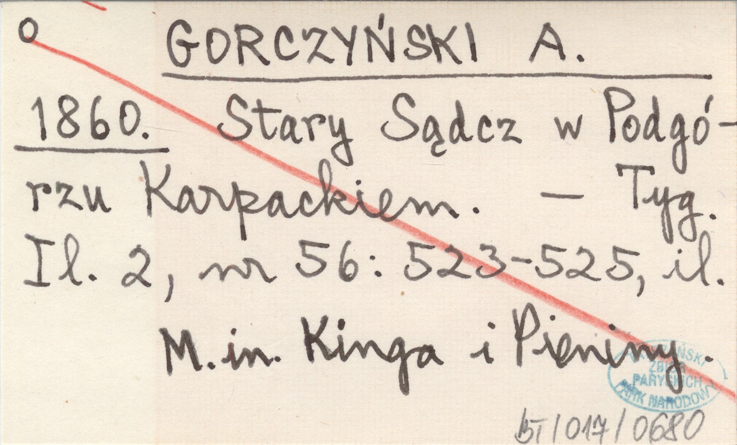 GORCZYŃSKI A. 1860 Stary Sądcz w Podgórzu Karpackiem.