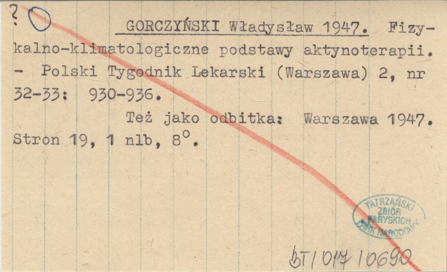 GORCZYŃSKI Władysław 1947 Fizykalno-klimatologiczne podstawy aktynoterapii.