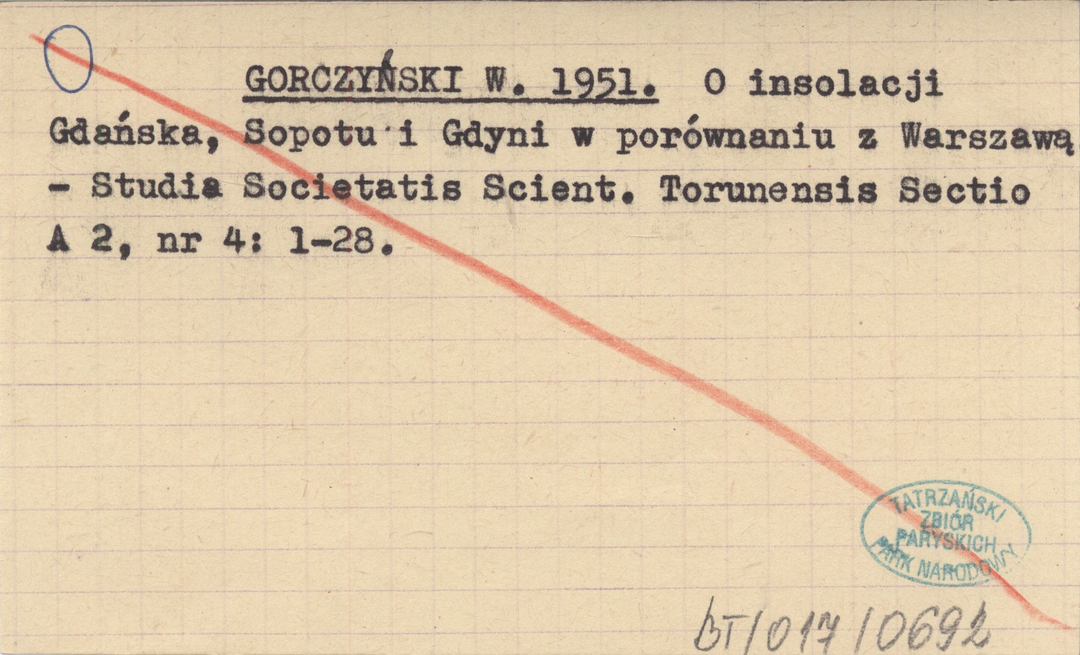 GORCZYŃSKI W. 1951 O insolacji Gdańska, Sopotu i Gdyni w porównaniu z Warszawą.