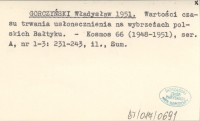 GORCZYŃSKI Władysław 1951 Wartości czasu trwania usłonecznienia na wybrzeżach polskich Bałtyku.