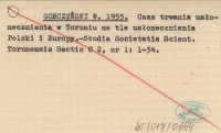 GORCZYŃSKI W. 1955 Czas trwania usłonecznienia w Toruniu na tle usłonecznienia Polski i Europy.