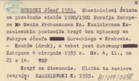 GORECKI Józef 1935 Zbawicielowi Świata na przełomie wieków 1900/1901 Parafja Zakopane ze Swoim Proboszczem Ks. Kazimierzem Kaszelewskim postawiła krzyż ten wykonany we Fabryce Józefa Goreckiego w Krakowie.