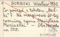 GORECKI Wiesław 1932 Co począć z tekstem "Halki"? Na marginesie 60-tej rocznicy zgonu Stanisława Moniuszki.
