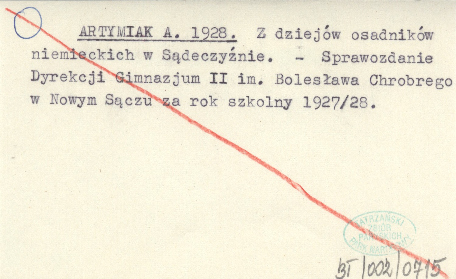 ARTYMIAK A. 1928 Z dziejów osadników niemieckich w Sadeczyźnie.