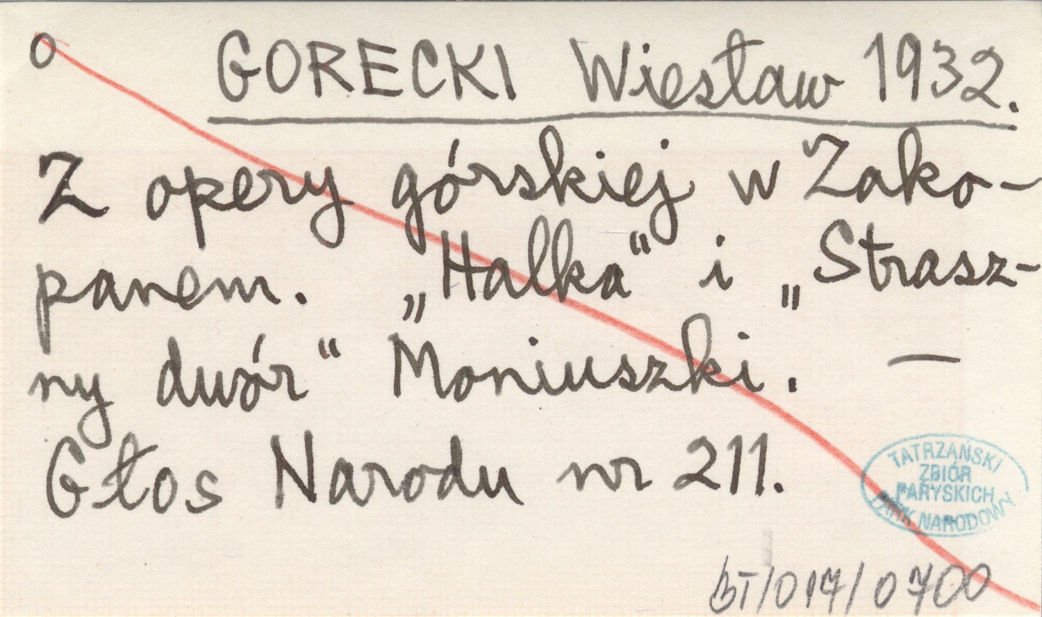 GORECKI Wiesław 1932 Z opery górskiej w Zakopanem. "Halka" i "Straszny dwór" Moniuszki.