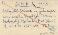 GOREK Augustín 1953 Geologické štúdia na juhozápadnom svahu Vysokých Tatier.