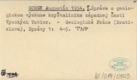 GOREK Augustín 1954 a II. Zpráva o geologickom výskume kryštalinika západnej časti Vysokých Tatier.