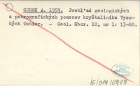 GOREK A. 1959 Prehľad geologických a petrografických pomerov kryštalinika Vysokých Tatier.
