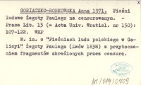 GORIACZKO-BORKOWSKA Anna 1971 Pieśni ludowe Żegoty Paulego na cenzurowanym.