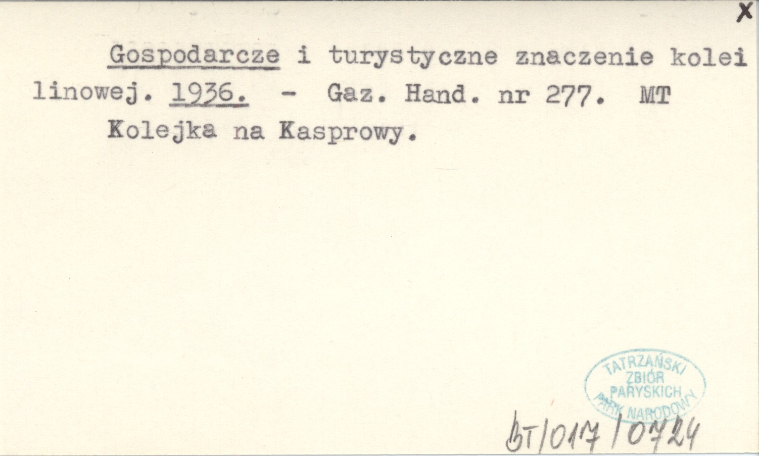 Gospodarcze i turystyczne znaczenie kolei linowej. 1936