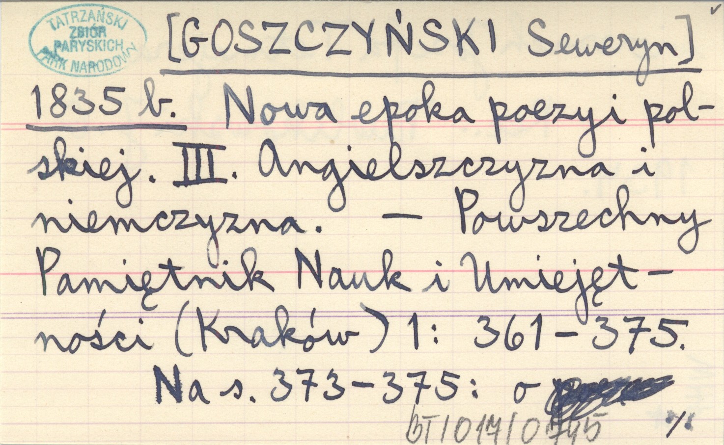 [GOSZCZYŃSKI Seweryn] 1835 b Nowa epoka poezyi polskiej. III. Angielszczyzna i niemczyzna.