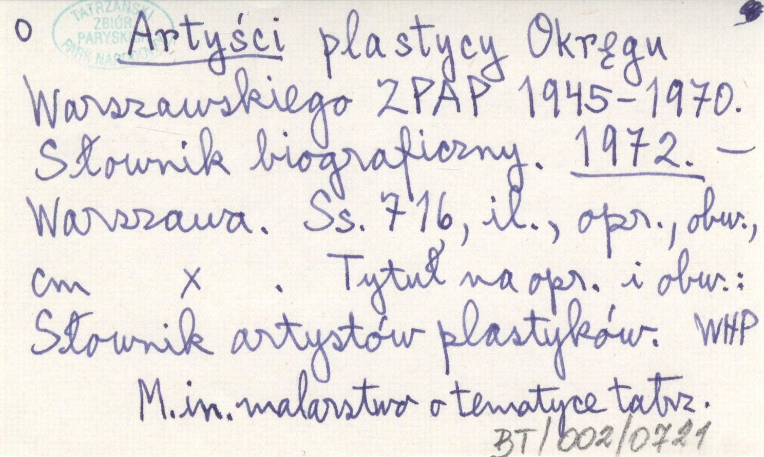 Artyści plastycy Okręgu Warszawskiego ZPAP 1945-1970. Słownik biograficzny. 1972